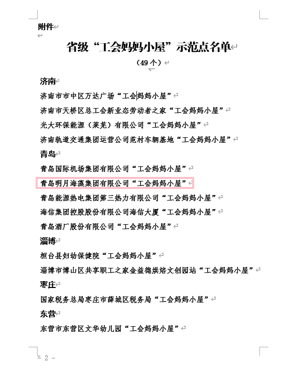 明月海藻集團 “工會媽媽小屋”獲評省級示范點