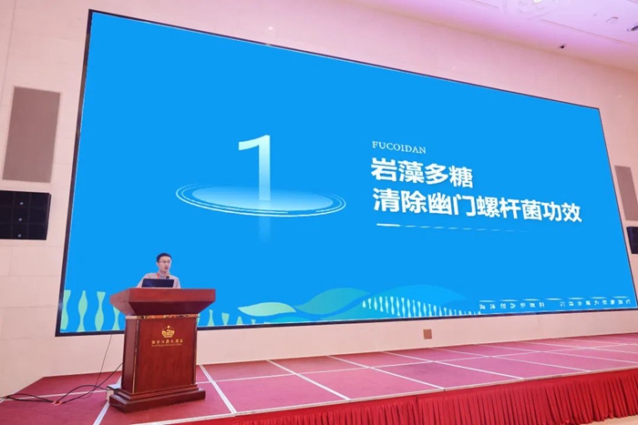 此次大會,明月海藻生物健康科技集團副總裁、海藻活性物質(zhì)國家重點實驗室-巖藻多糖研究室主任孫占一應(yīng)邀參加未來功能食品專場演講,分享《巖藻多糖 保胃健康 腸享生活》。從巖藻多糖在胃腸道健康領(lǐng)域的功效研究著手,講述巖藻多糖帶來一種全新的胃腸道健康解決方案,特別是備受關(guān)注的去除幽門螺桿菌解決方案,為客戶提供安心且高效的清幽新選擇。