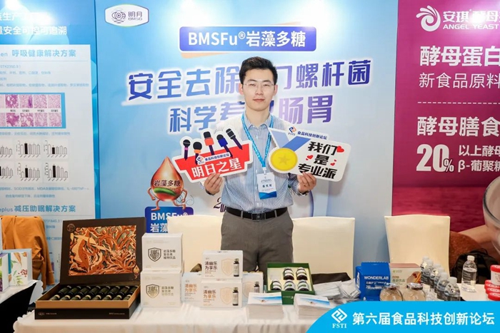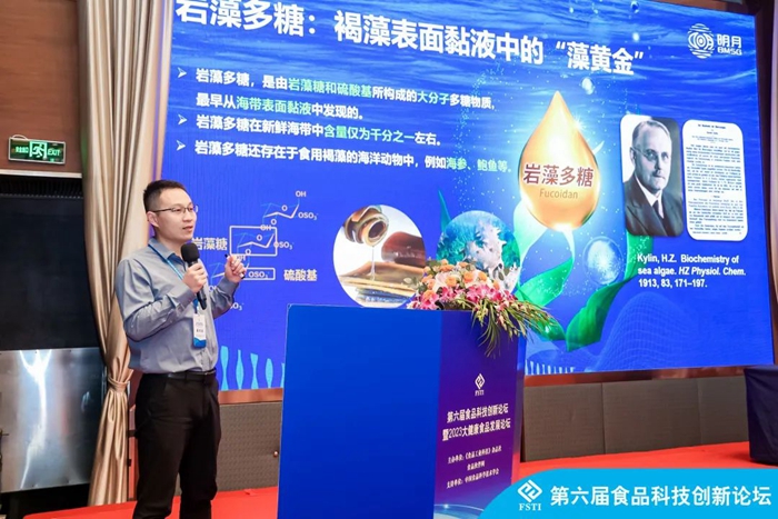 青島明月海藻生物健康科技集團副總裁孫占一,在功能食品論壇上分享了海洋創新型原料巖藻多糖在去除幽門螺桿菌、改善胃腸道、提高免疫力方面的健康功效。