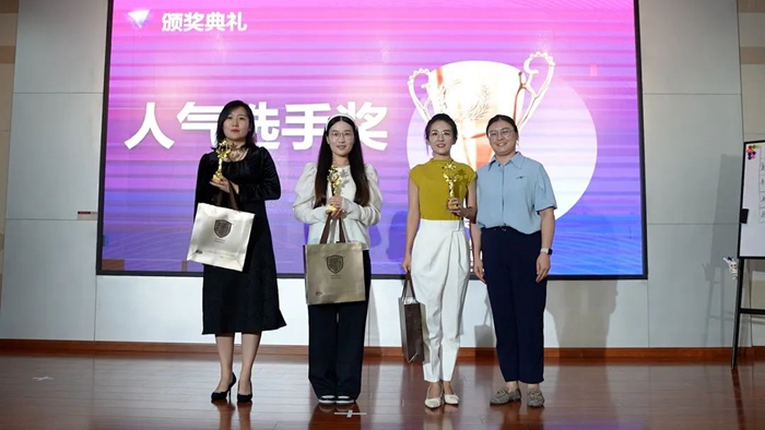 明月愛熙總經理冷雪(右一)為人氣選手獎頒獎