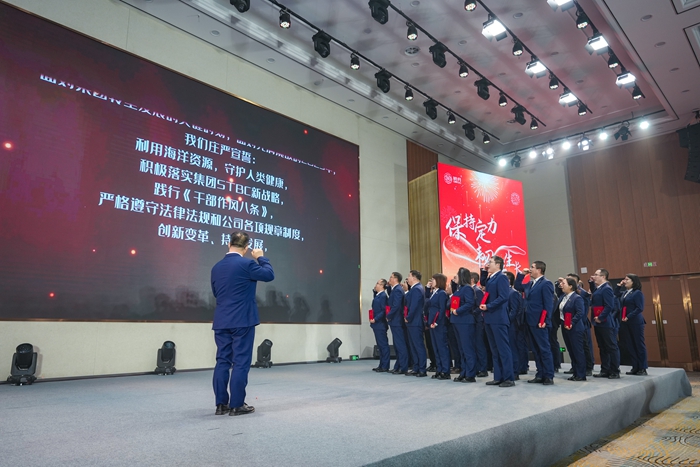 會(huì)上,公布了新晉升、新提拔管理干部名單,并為他們現(xiàn)場(chǎng)頒發(fā)了新聘任證書(shū)。隨后,部分新聘任的干部代表上臺(tái)宣誓。鏗鏘有力的誓詞,充分彰顯了勇?lián)厝巍㈤_(kāi)創(chuàng)未來(lái)的堅(jiān)定決心與昂揚(yáng)風(fēng)貌。