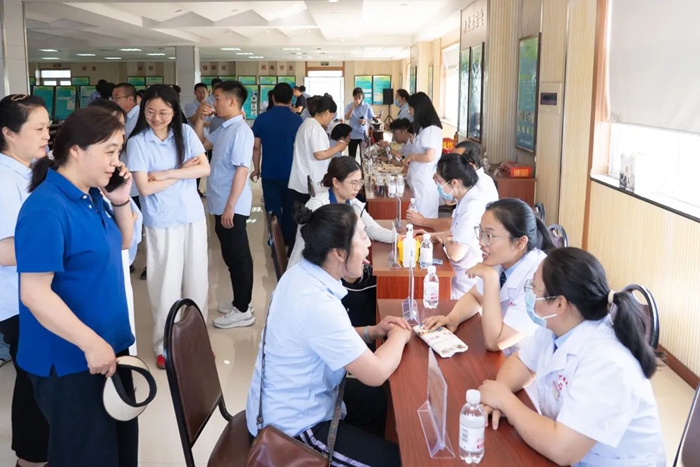 現場精心設置了眾多體驗區域,成為員工們爭相打卡的“健康驛站”。耳穴壓豆、刮痧、拔罐等中醫特色療法體驗區前排起長隊,大家親身感受著中醫外治法的獨特效果,緩解了頸肩腰腿的疲勞;中藥茶飲藥膳體驗則讓員工們品嘗到了“舌尖上的健康”;綜合服務中心的工作人員詳細講解著功效與制作方法;藥劑科準備的常用藥材展示吸引了眾多目光,藥師現場教學“識草辨藥”,膏方、中藥香囊琳瑯滿目,并耐心解答著大家關于中醫理療使用的各種疑問,提供科學用藥指導。