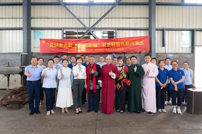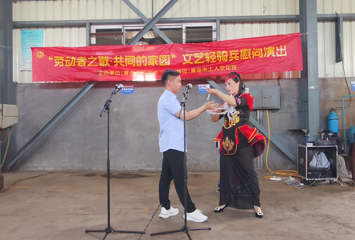 6月12日,由青島市總工會(huì)主辦,青島市工人文化宮承辦,青島市工人文化宮聯(lián)盟、青島西海岸新區(qū)工人文化宮協(xié)辦的“文藝輕騎兵”首場(chǎng)演出在明月海藻集團(tuán)隆重舉行。這場(chǎng)以“中國(guó)夢(mèng)·勞動(dòng)美——?jiǎng)趧?dòng)者之歌·共同的家園”為主題的深情慰問(wèn),由青島市知名藝術(shù)家代表聯(lián)袂呈現(xiàn),將精心編排的藝術(shù)盛宴直接送達(dá)生產(chǎn)一線(xiàn),不僅彰顯了市總工會(huì)對(duì)基層勞動(dòng)者的高度重視,也體現(xiàn)了明月作為演出基地的獨(dú)特價(jià)值與認(rèn)可。平日機(jī)器轟鳴的奮斗空間,此刻化身承載藝術(shù)與敬意的舞臺(tái),吸引了眾多一線(xiàn)員工現(xiàn)場(chǎng)觀看。集團(tuán)工會(huì)主席楊曉菁、黨群中心主任封安波、生產(chǎn)總監(jiān)王培崗等領(lǐng)導(dǎo)共同出席觀禮。