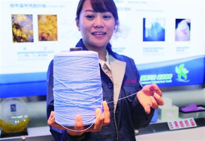 “這就是我們準備推出的新產品——一種新型醫用輔料,它是以從海藻中分離出的海藻酸為原料制成的。”李可昌告訴記者,這種紗布是從海藻中提取海藻酸形成海藻酸鈉制成的,具有高濕性、止血快、易去除等多種優點,“當海藻酸鹽纖維用于傷口接觸層時,與傷口滲出液接觸,海藻酸鹽中的鈣離子和滲出液中的鈉離子發生交換,生成可溶性的鈉鹽。這個離子交換反應使得海藻酸鹽膨脹并在傷口表面形成一種濕的凝膠膜。這種凝膠膜是親水性的,可使氧氣通過而細菌不能通過,并促進新組織的生成。”從經濟效益角度來講,10平方厘米的一塊“海藻繃帶”售價就高達80元,給企業帶來的產值比過去翻了十倍以上。