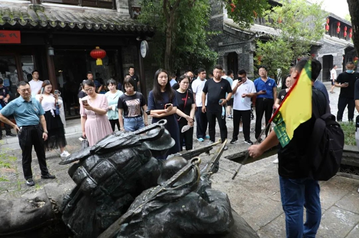 走進(jìn)臺(tái)兒莊古城,處處都是古河道、古碼頭,舟楫搖曳,水巷縱橫,當(dāng)?shù)氐拇迕裰_(tái)而居,大家立刻被濃厚的運(yùn)河文化深深吸引,先后參觀了運(yùn)河奏疏館、運(yùn)河酒文化展館、運(yùn)河漕幫鏢局博物館、藥典博物館、藻食記輕食文化館,形象直觀地了解了古運(yùn)文化的源遠(yuǎn)流長(zhǎng)和老臺(tái)兒莊的風(fēng)土人情。