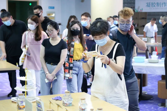 “也許您并不知道,很多火腿腸中的白色物質(zhì)其實并不是脂肪和肥肉,而是海藻酸鈉。海藻酸鈉能夠有效改善肉制品的品質(zhì),在肉類制品加工過程中有重要的應(yīng)用價值,可以替代部分脂肪,降低約50%動物脂肪的用量,形成健康低脂的特點?!痹诿髟潞T寮瘓F的海藻科技館內(nèi),火腿腸、冰淇淋、啤酒、面包等食品類展臺吸引了大家的目光,而得知這一“真相”后,很多人直呼確實漲了知識。