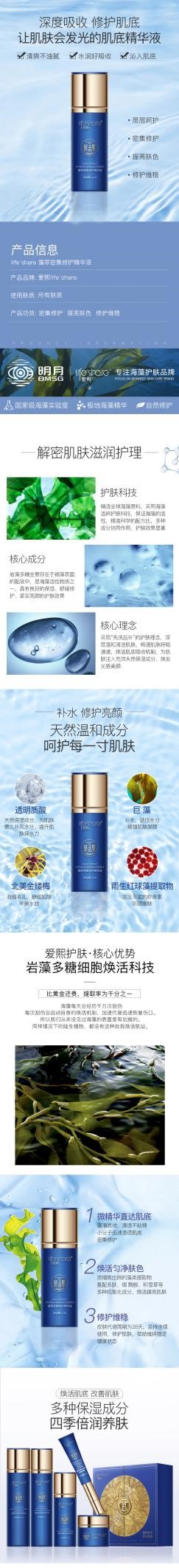 產品介紹:突破海藻活粹源護膚科技,專利性濃縮深海珍藻精華,匯聚天然水潤護膚精華,形成天然肌膚強韌屏障,補水鎖水,刺激膠原重塑,煥活肌膚強大美力。