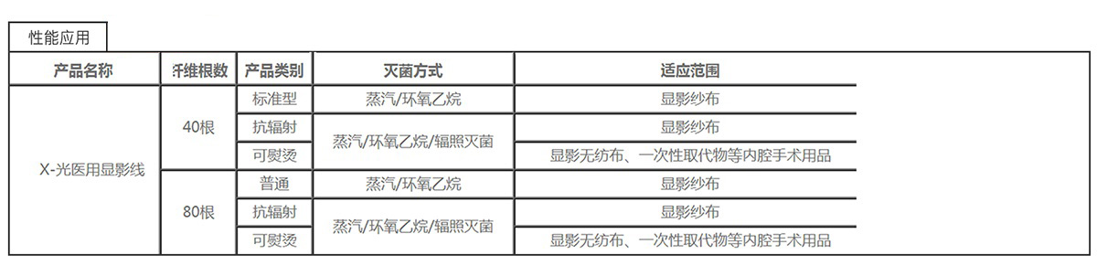 “潔靈絲”X-光醫(yī)用顯影線是通過采用先進(jìn)的材料加工技術(shù)制備成型,由若干高分子長(zhǎng)絲包覆后形成,其粗細(xì)度可根據(jù)用戶需要進(jìn)行調(diào)整。本公司生產(chǎn)的“X-光醫(yī)用顯影線”的性能及加工工藝嚴(yán)格按照歐盟標(biāo)準(zhǔn),產(chǎn)品具有很高的柔軟性及很好的物理機(jī)械性能,各項(xiàng)指標(biāo)達(dá)到國際先進(jìn)水平,可以與棉紗線一起織造后制備X-光顯影紗布,也可以通過加熱或超聲波方法與各種醫(yī)用織物粘合。